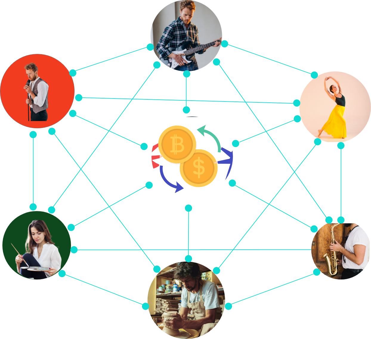 The Creator Blockchain is a decentralized exchange and barter marketplace designed to power a world where artists are free to create, collaborate and share without the confines and pressure of formal contracts, publishing, and distribution.
